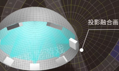 熒幕為半球形,由多臺(tái)投影設(shè)備投射的畫面無縫融合組成。